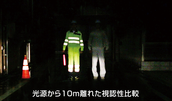 実験の結果、距離が離れるにつれ、一般作業服との視認性に差が出ることがわかりました。高視認性安全服は視認性が求められる現場では最適と言えるでしょう。