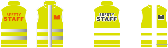 製品には、蛍光素材の目に見える範囲の使用面積・再帰性反射素材の目に見える範囲の使用面積・前身頃と後身頃の面積差は50%±10%以内・再帰性反射素材の角度は20°以内・前立てによる再帰性反射素材の断裂は50㎜以内など、その他にも仕様の要求事項があります。上下の組み合わせによる面積のクラス算出は、JIS T81027より適応されました。