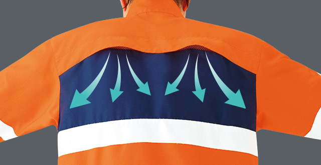 上半身にこもった熱気を、体の動きとともに背中から排出させるスリットを設けています。