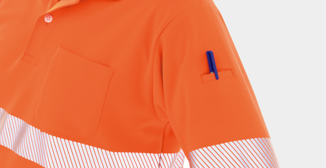 夜間作業の安全性を考慮して、腕、胸に反射材を採用。ニット素材のしなやかさと通気性を妨げない反射プリント仕様。