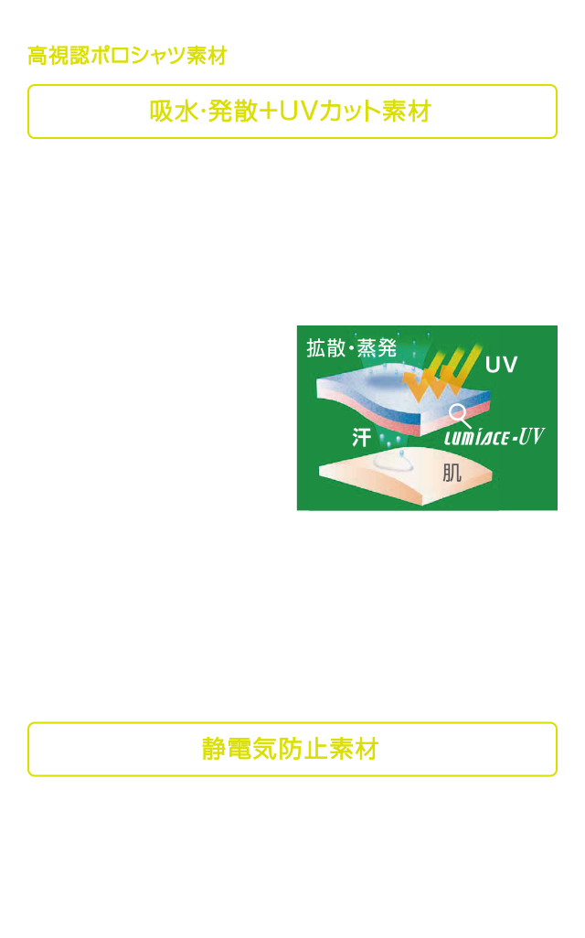 高視認性安全服は着用者の車両事故リスクを軽減する機能性防護服です。反面、蛍光生地と再帰性反射材の取り扱いには注意を要します。職場の環境、着用頻度、洗濯方法、保管方法等で差異がございますが、製品の劣化については各職場において定期的に蛍光生地と再帰性反射材の効力をご確認願います。