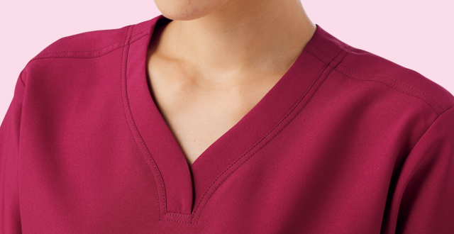 衿のカッティングを工夫することで着脱しやすく、屈んだ時に胸元が気にならない仕様になっています。