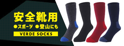 定番人気!安全靴専用の靴下『ベルデソックス』。つま先やかかとに強度を持たせて破れにくい仕様になっており、普段使いでも使える靴下です。
