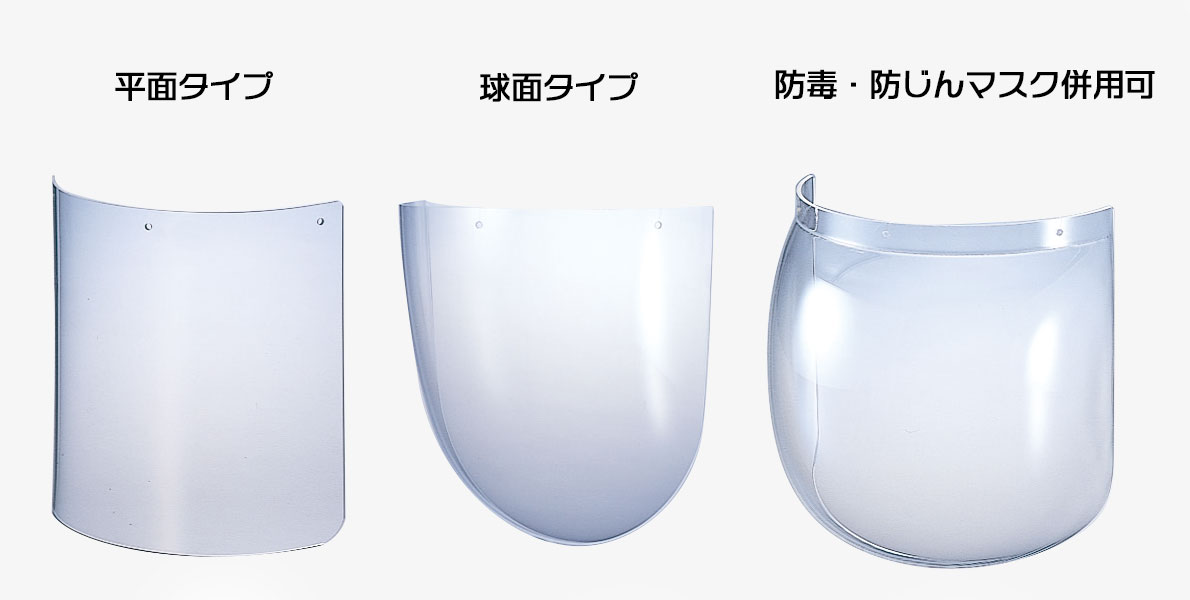 「イヤーマフ」は耳全体を覆い周りの騒音を防ぐ効果のある聴覚保護具です。「メッシュ面」はチェーンソーや刈払機使用時の顔面保護に、「防災面」は作業中の粉じんや薬液や飛沫などから顔面を守ります。作業に合わせて組合せご利用ください。