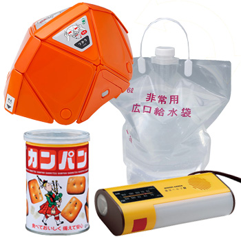 いつ起こるかわからない災害に備え、灯り、水、食料、トイレ、情報などあらゆるものに対して常日頃から意識をし被害をより小さくとどめる「減災」について考えることが重要です。 給水車や炊き出しなどの「公助」「共助」が行き渡るまでに、自分たちで生き抜く「自助」をいかに行うか、そのためには何が必要か。ミドリ安全は、食べやすい保存食(非常食)、防災ヘルメット、家具転倒防止などの災害避難グッズや防災セットなど、豊富な防災グッズを取り揃えています。家庭や職場で本当に必要な防災グッズについて考え、その日に備えましょう。