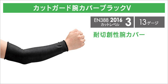 カットガードシリーズなどの耐切創性手袋と併用すれば、指先から腕部分までしっかりと保護できます。