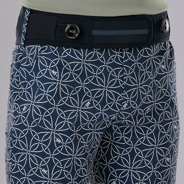 通気性と軽さに非常に優れたDotAir素材を使用。衣服内に空気が通り快適で涼しい状態を作り出し、和柄調のプリントが暑い夏をさわやかな心地にさせます。裾を折って股下を少し短くして着用することもできます。締める、緩めるが調節しやすいBOA®システム搭載のベルトが腰への負担を軽減します。ベルトは取り外し可能で、普通のベルトを通すことも可能です。