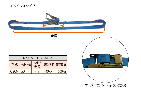 荷締具 テザック ラッシングベルト O−20−N 50mm×4m (全長)の商品詳細画面トップへ戻る