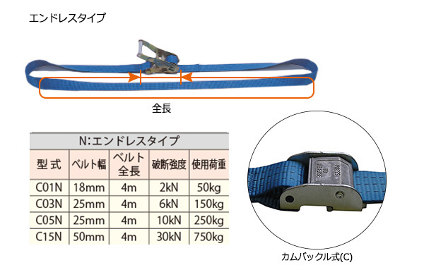 荷締具 テザック ラッシングベルト C−05−N 25mm×4m (全長)の商品詳細画面トップへ戻る