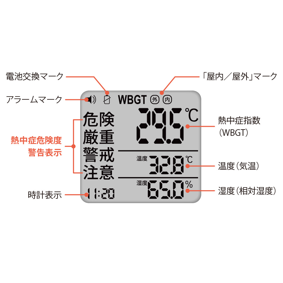 | WBGT | 測定範囲 | 0.0〜50.0℃ 0.1℃単位 |