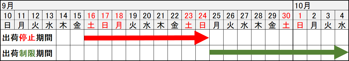 B 10月5日(木)以降は通常出荷対応を予定しております。